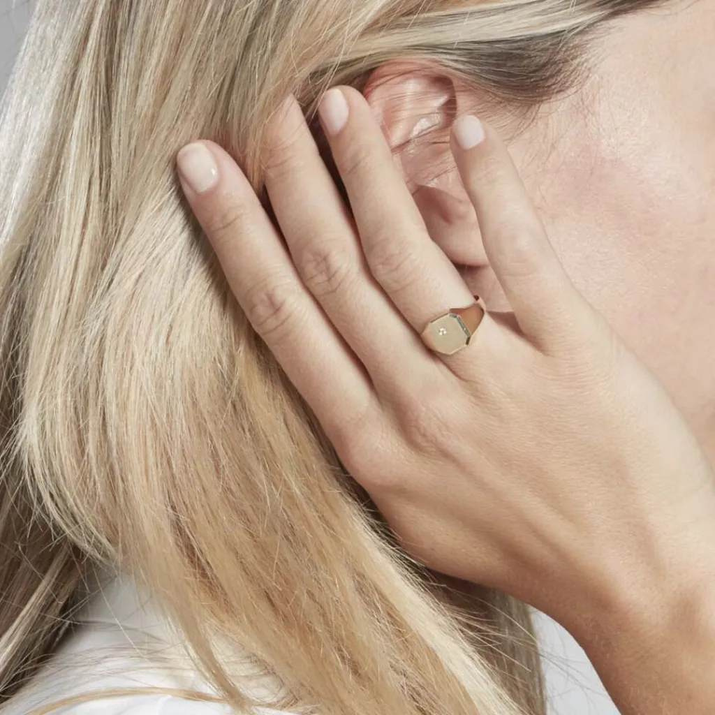 Chevalière Or Jaune 375/1000 Plateau Carré Oxyde De Zirconium