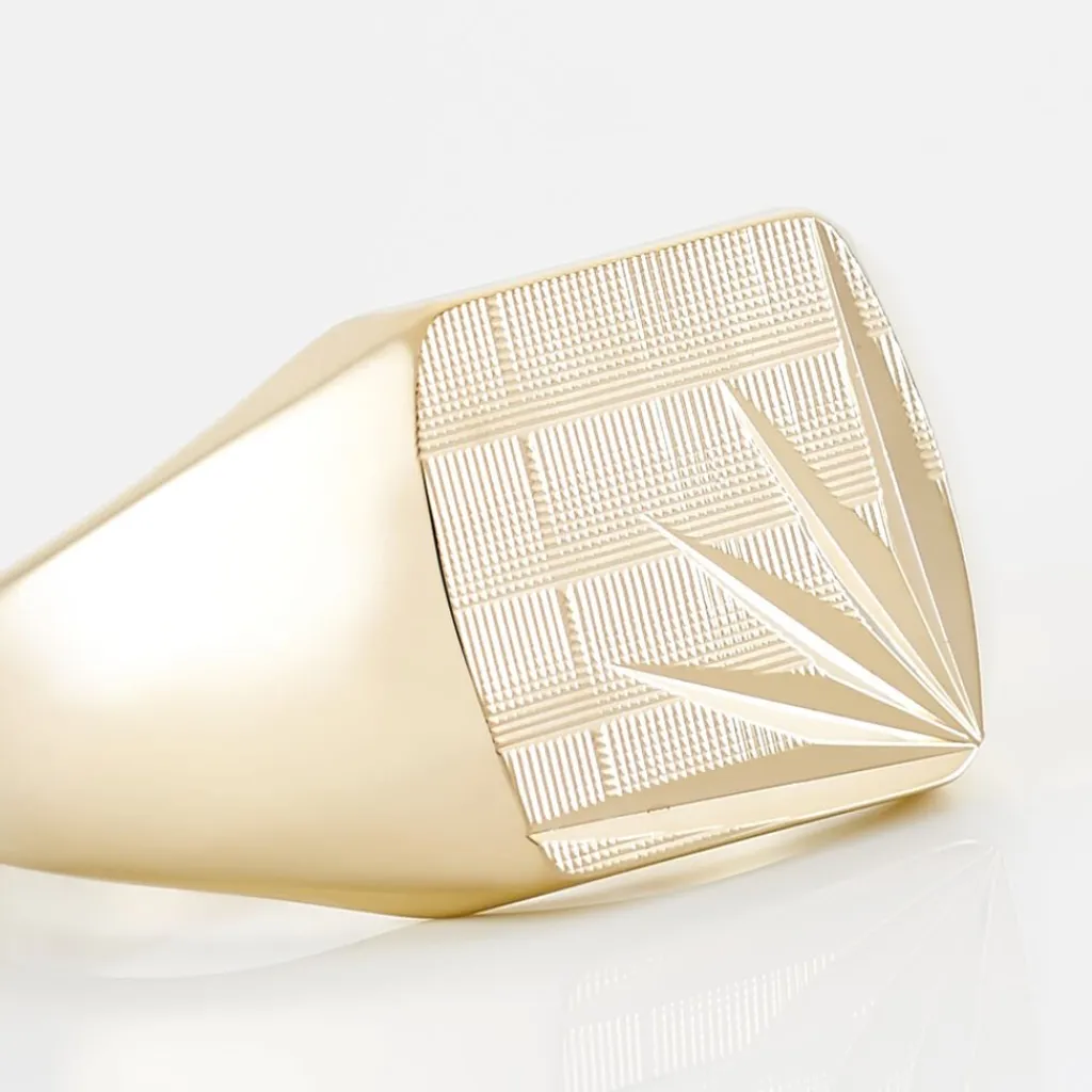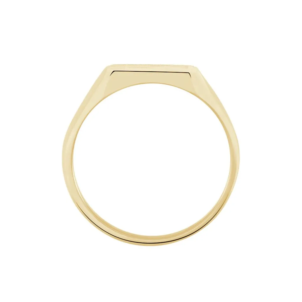 Chevaliere Plaqué Or Jaune Plateau Carre Grand Damier Soleil