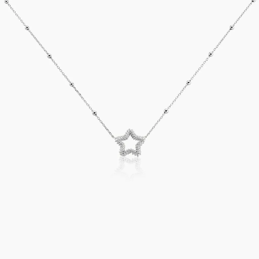 Collier Argent Blanc 925/1000 étoile Effet Perlé Maille Forçat 42+3cm