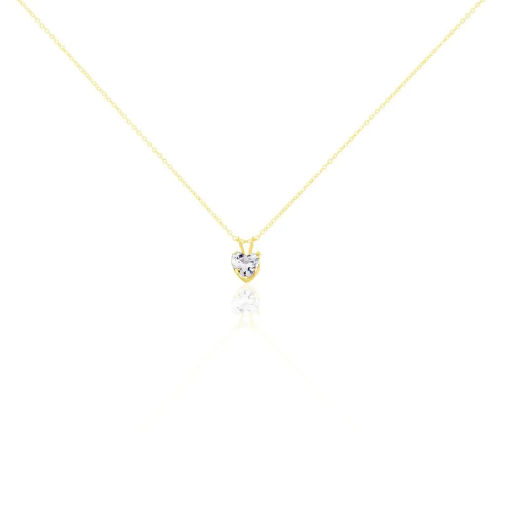 Collier Or Jaune 375/1000 Chaine Forçat C艙ur Serti 4 Griffes Oxyde De Zirconium 40+2cm