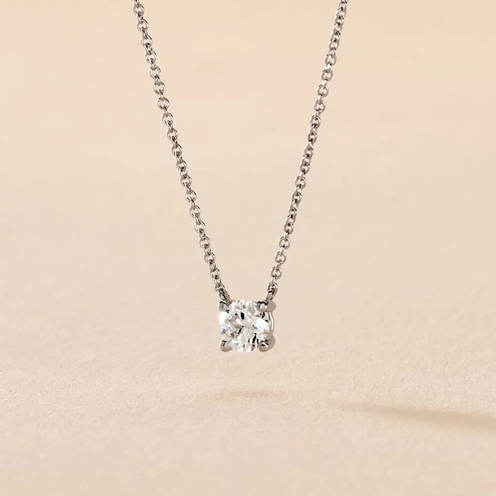 Collier Or Blanc 375/1000 Solitaire Diamant 0.30cts 42cm
