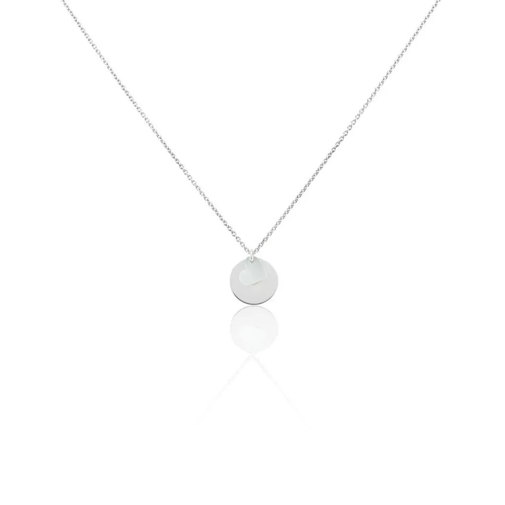 Collier Argent Blanc 925/1000 C艙ur Nacre Blanche Pastille Maille Forçat 45cm