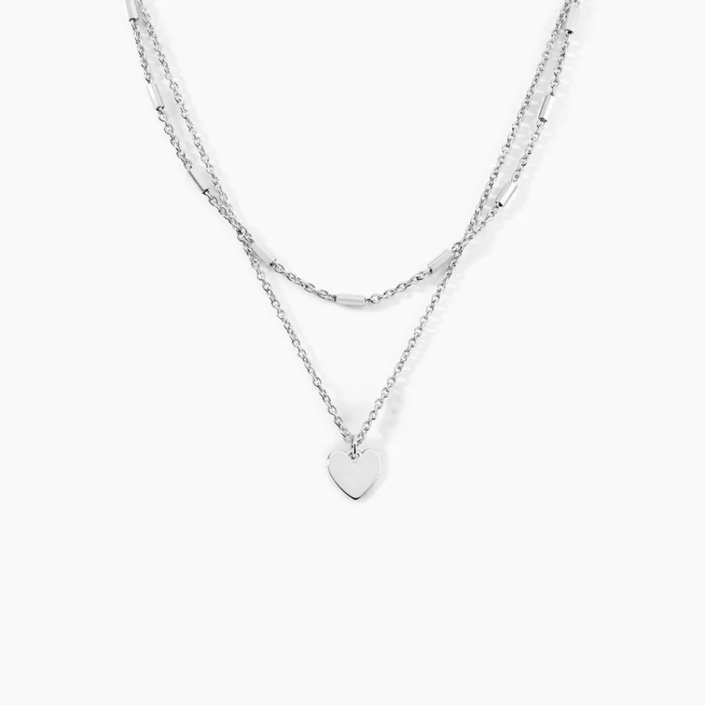Collier Argent Blanc 925/1000 C艙ur Double Mailles Forcat Et Fantaisie 45cm