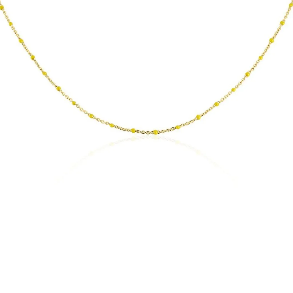 Collier Argent Dore 925/1000 Email Jaune 44cm