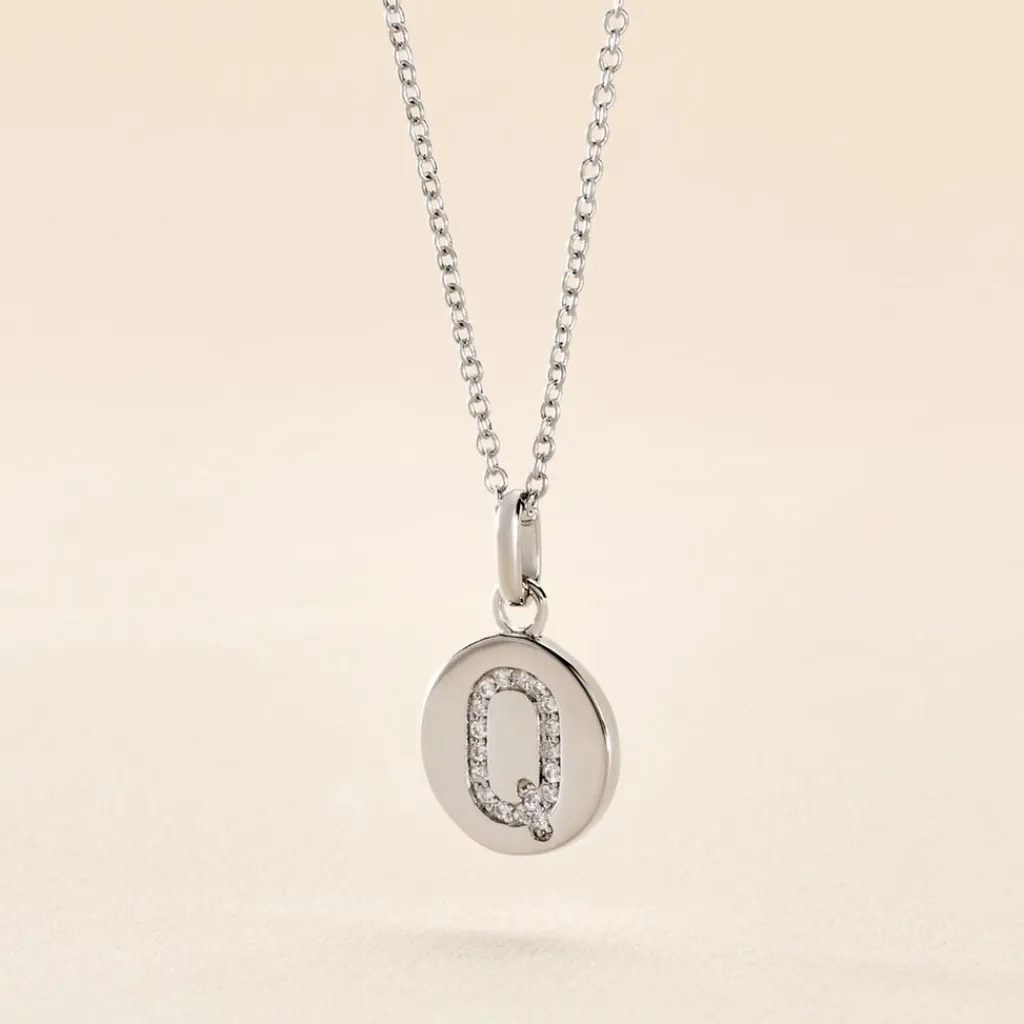 Collier Argent 925/1000 eugenien Pendentif Lettre Q Pavage Oxydes De Zirconium Maille Forcat 45cm