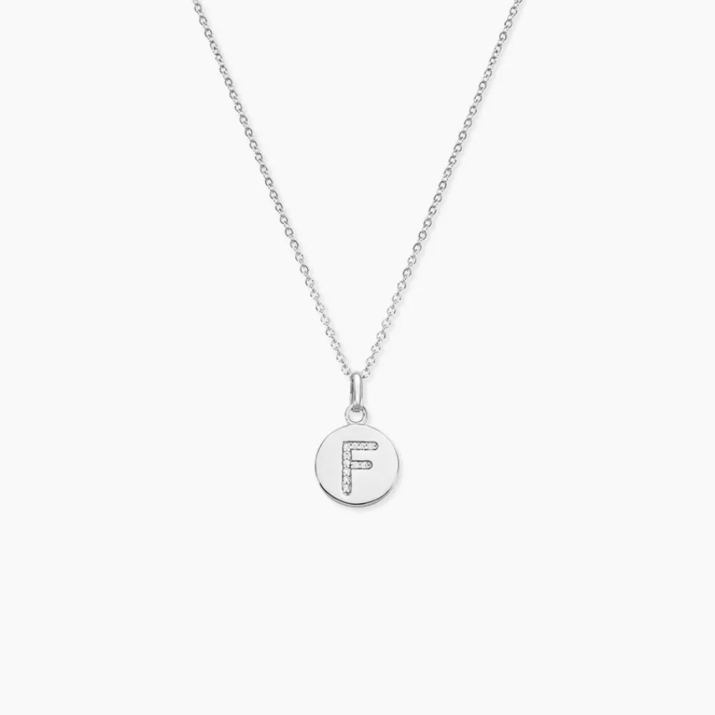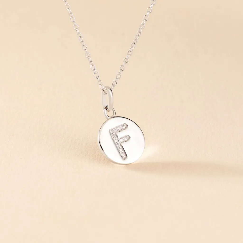 Collier Argent 925/1000 eugenien Pendentif Lettre F Pavage Oxydes De Zirconium Maille Forcat 45cm