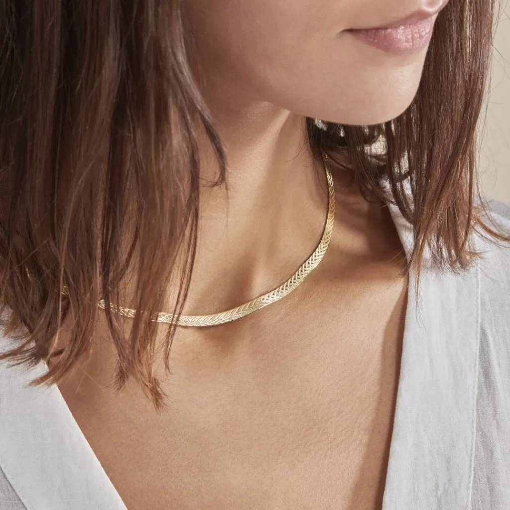 Collier Argent Jaune 925/1000 Maille Fantaisie Motifs Chevrons Largeur 4.5mm 42cm