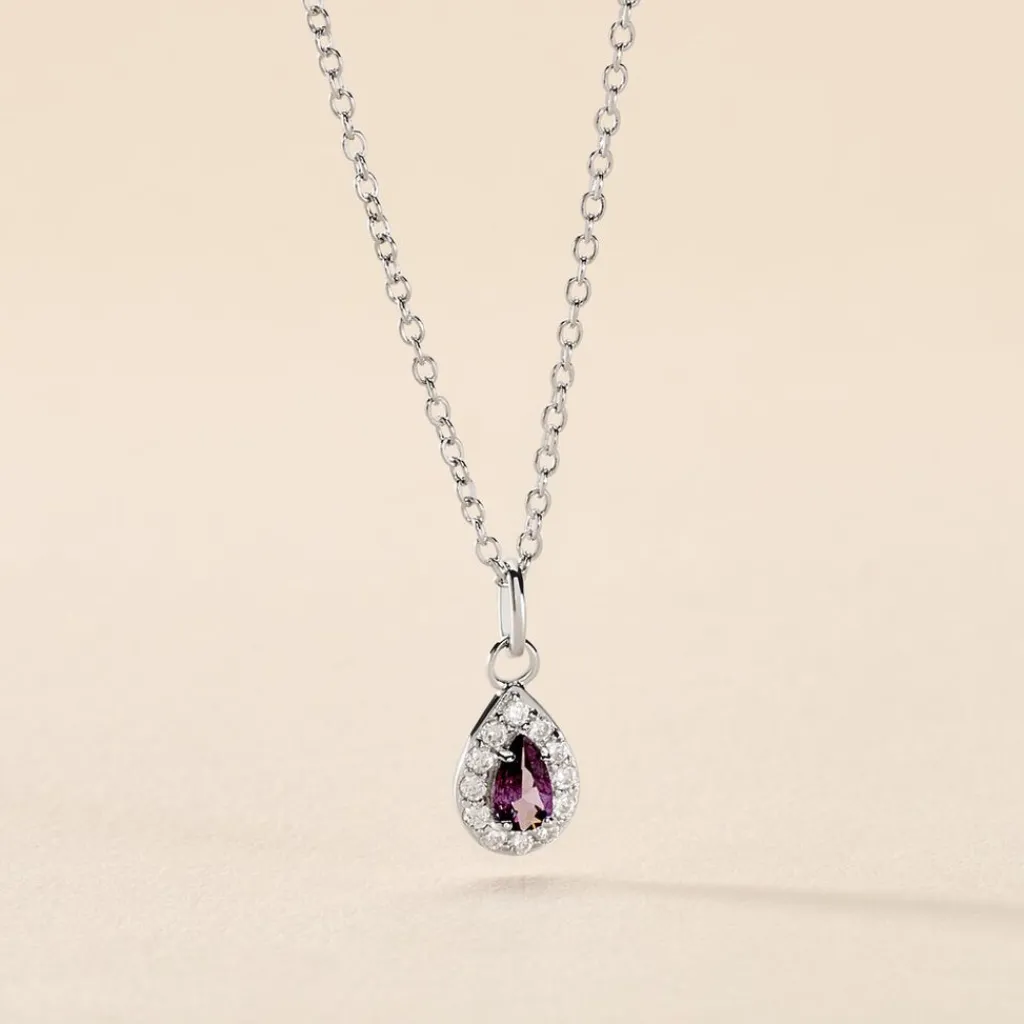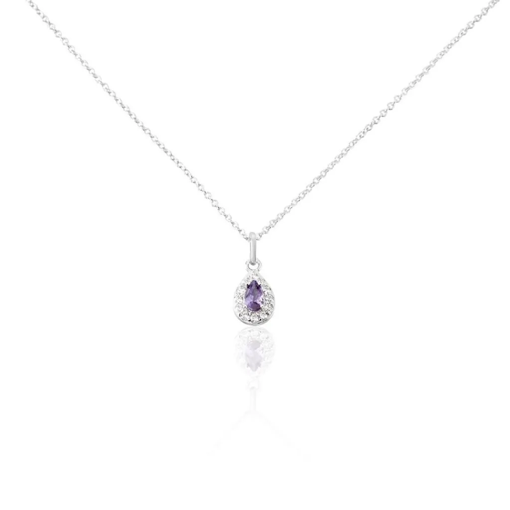 Collier Argent 925/1000 tania Goutte Violette Entourage Sertis Griffes Oxydes De Zirconium Maille Forçat 45cm