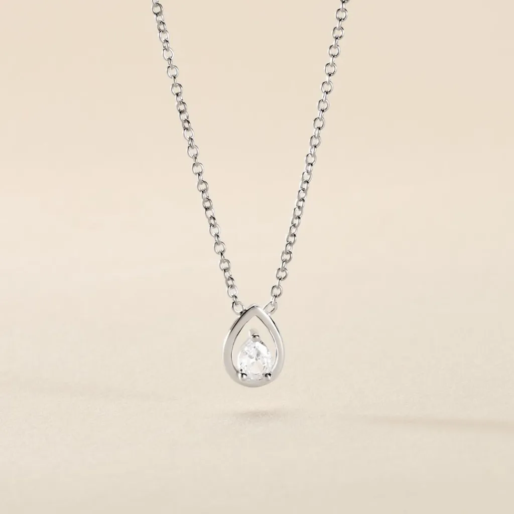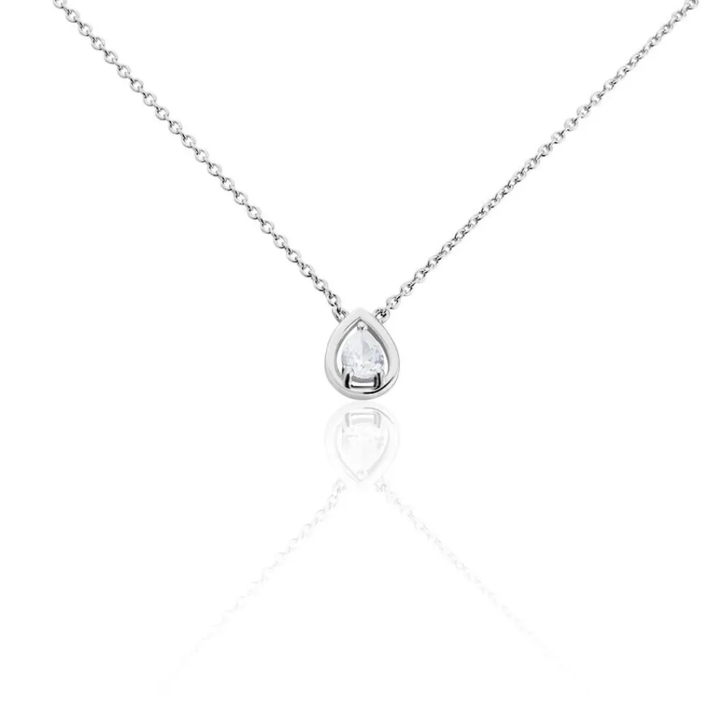 Collier Argent 925/1000 temusio Goutte Sertis Griffes 1 Oxyde De Zirconium Maille Forcat 45cm