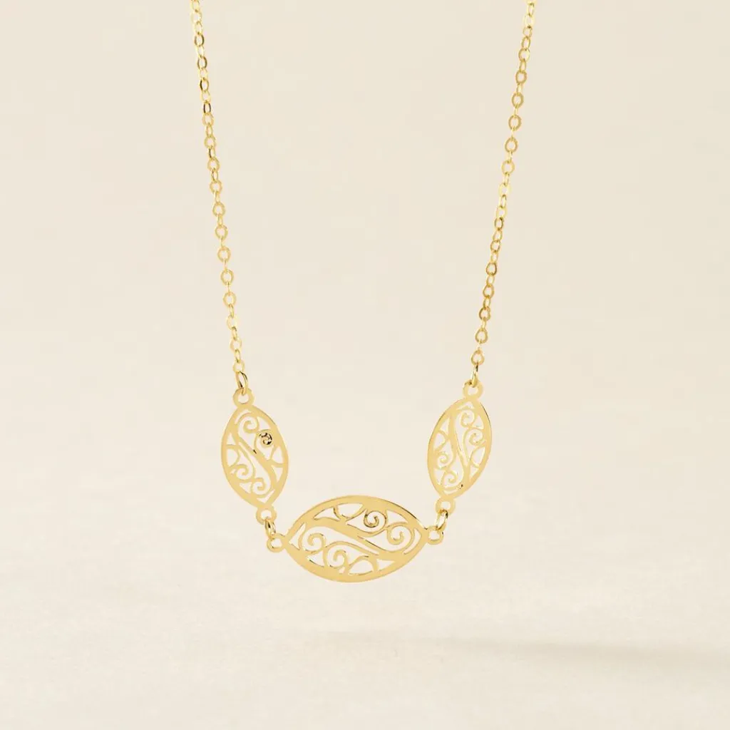 Collier Or Jaune 375/1000 3 Filigranes Maille Forcat Ronde 40+2cm
