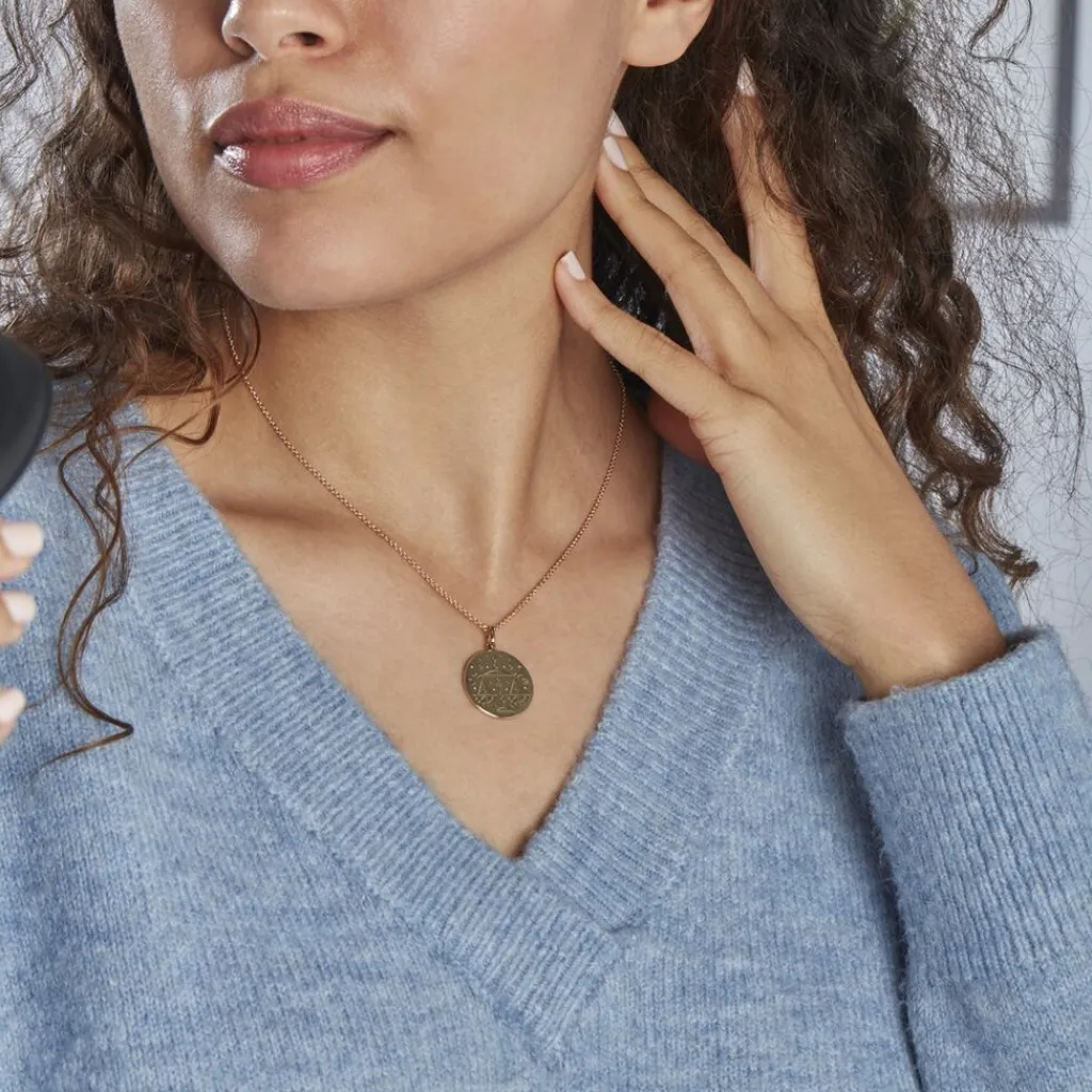 Collier Plaqué Or Jaune Forme Ronde Signe De La Balance Chaine Forcat 44cm