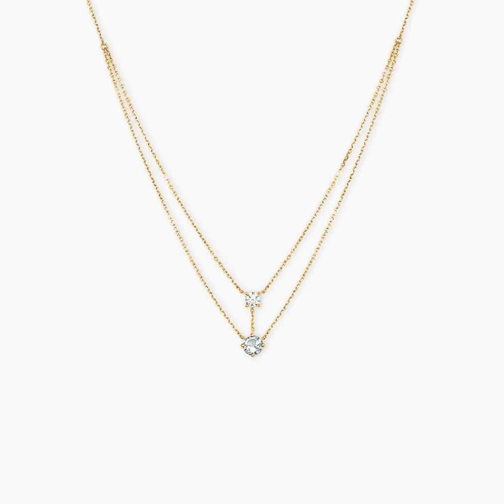 Collier Or Jaune 375/1000 Topaze Bleu Sky 0.33cts Et Oxyde De Zirconium Serti Griffes Double Rang Maille Forcat 40+2cm