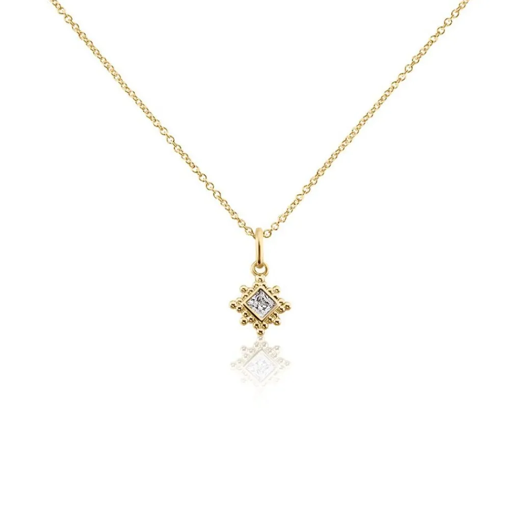 Collier Plaqué Or Jaune Losange Oxyde De Zirconium Entourage Perlé Maille Forçat 45cm