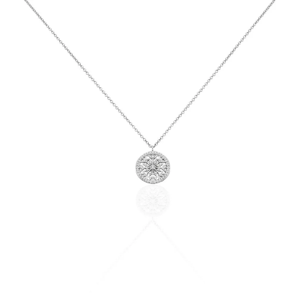 Collier Argent Blanc 925/1000 Forme Flocon De Neige Pastille Pavage Oxydes De Zirconium 48cm