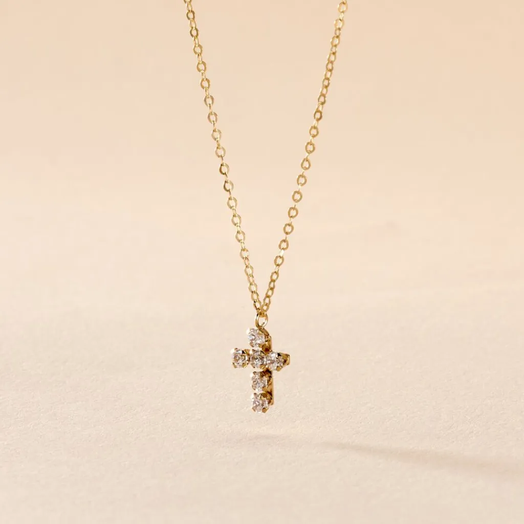 Collier Or Jaune 375/1000 Motif Croix Pm Oxydes De Zirconium Maille Forçat 45cm