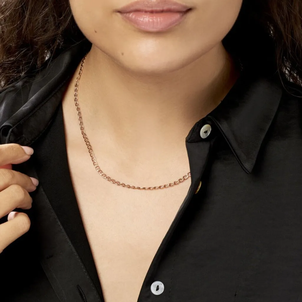 Collier Or Rose 375/1000 Maille Marine Largeur 3.05mm 45cm