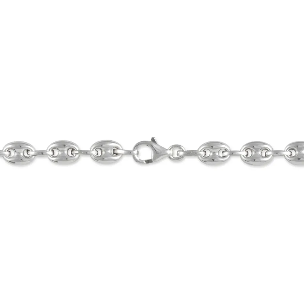 Collier Argent Blanc 925/1000 Maille Grain De Cafe Epaisseur 6mm 55cm