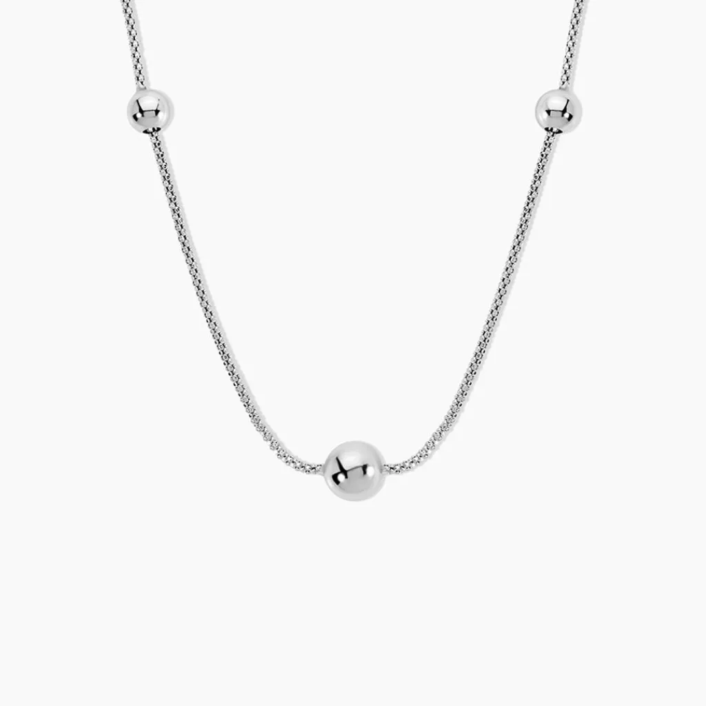 Collier Argent Blanc 925/1000 Boules Maille Pop Corn 50cm