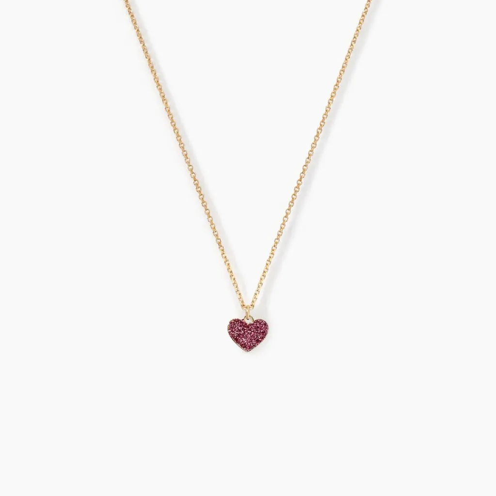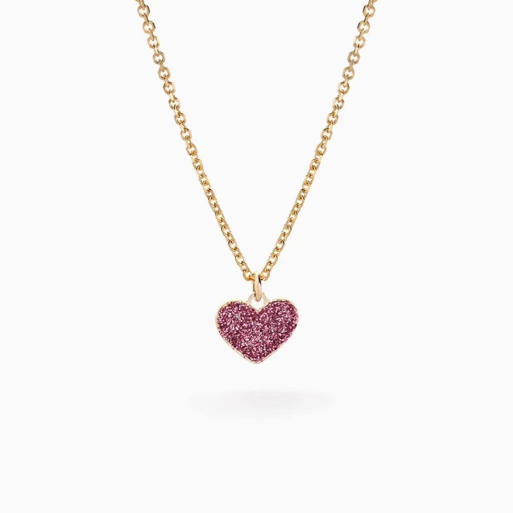 Collier Or Jaune 375/1000 Motif C艙ur Glitter Rose Maille Jaseron 38cm
