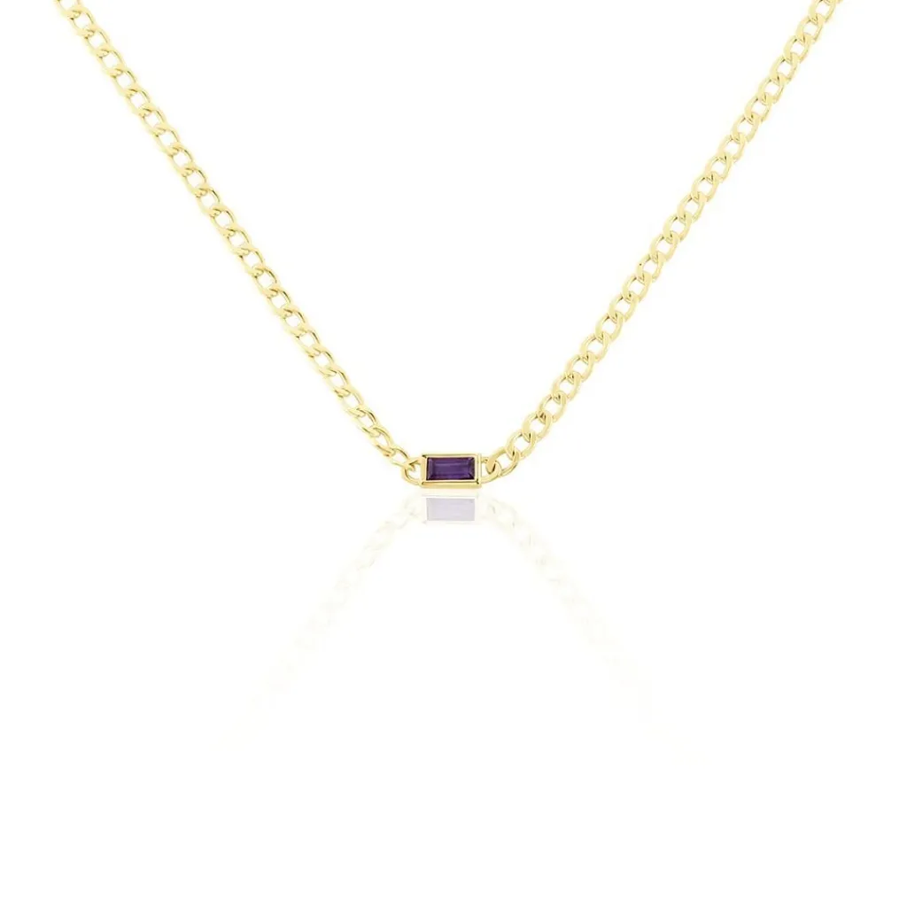 Collier Or Jaune 375/1000 Améthyse Baguette 0.24 Cts Maille Gourmette 42cm