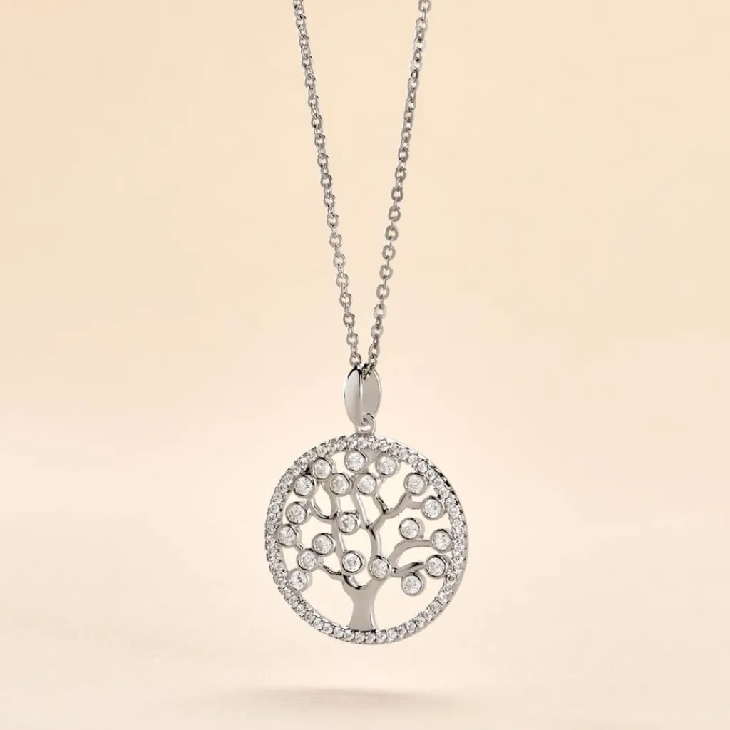 Collier Argent 925/1000 chimere Arbre De Vie Pavage Et Sertis Clos Oxydes De Zirconium 50cm
