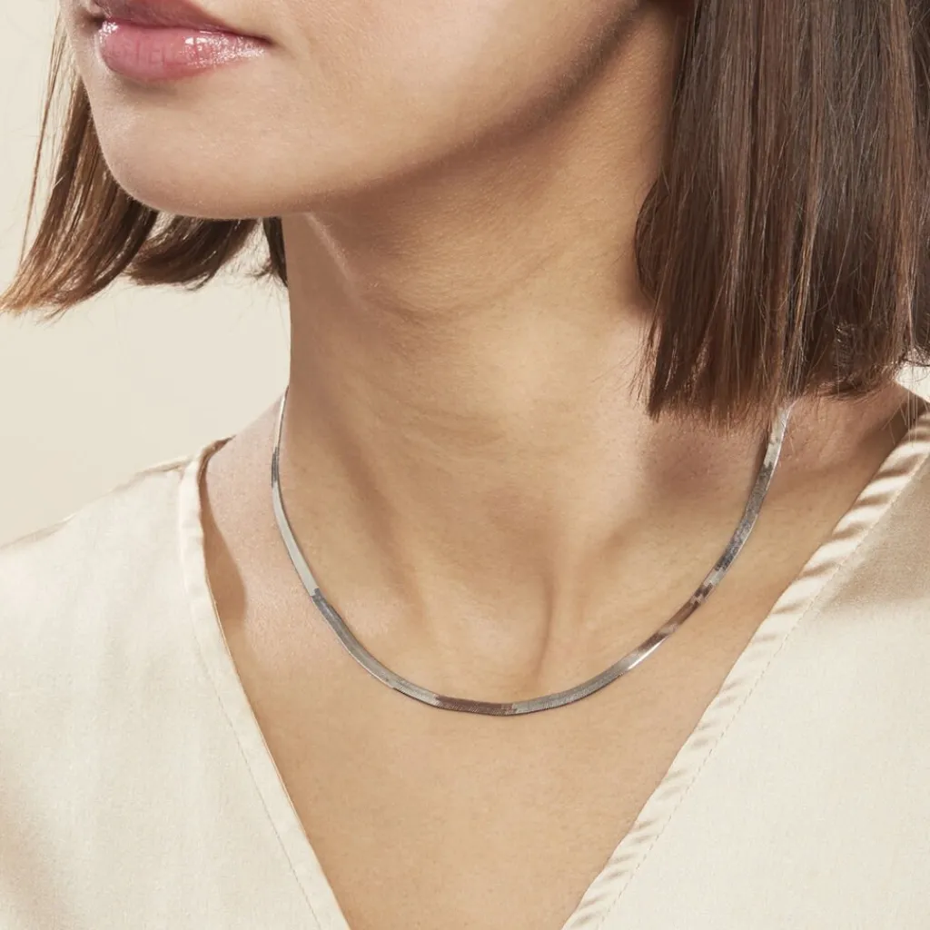 Collier Argent Blanc 925/1000 Maille Serpent Largeur 3mm 42cm