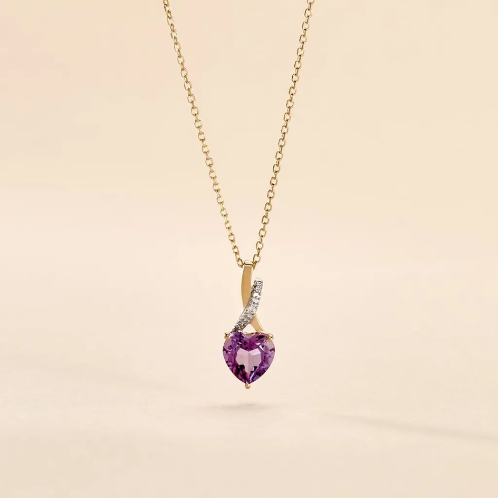 Collier Or Jaune 375/1000 Clothilde Améthyste Forme C艙ur Et Oxydes De Zirconium 42cm