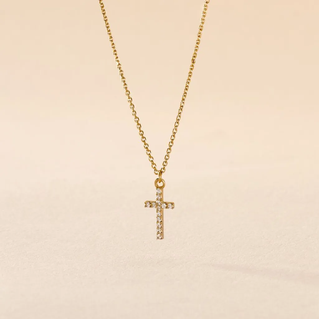 Collier Or Jaune 375/1000 Motif Croix Oxydes De Zirconium Maille Forçat 42cm