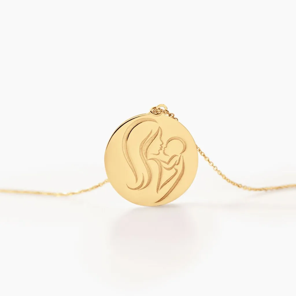 Collier Or Jaune 375/1000 Pastille Maman Et Enfant 42cm