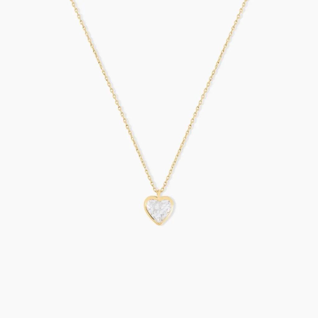 Collier Or Jaune 375/1000 Maille Jaseron Forme C艙ur Oxyde De Zirconium Serti Clos 40cm
