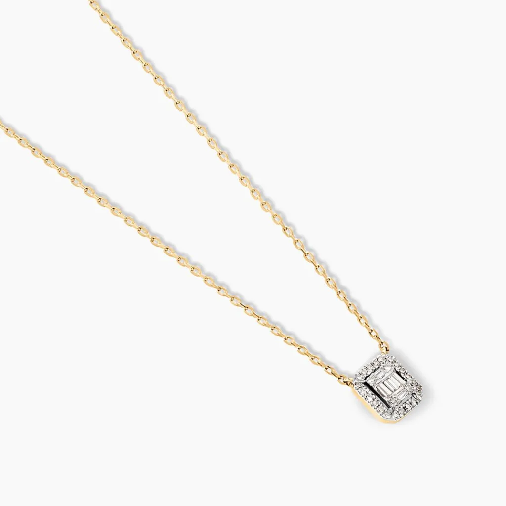 Collier Or Jaune 375/1000 Carree Diamants Baguettes 0,095Cts Maille Forcat 40+2Cm