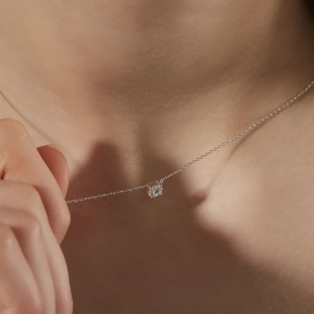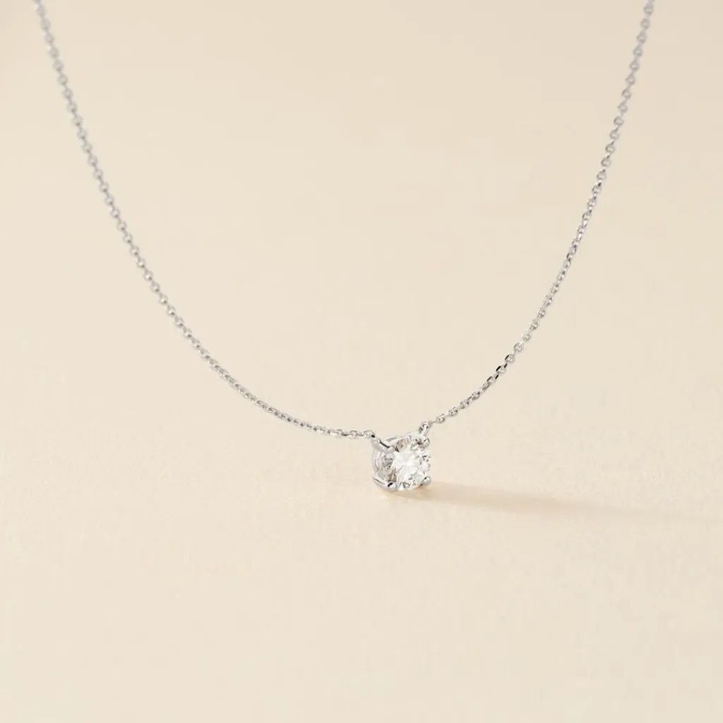 Collier Or Blanc 750/1000 Solitaire Maille Forcat Diamant Synthétique 0.41ct 45cm