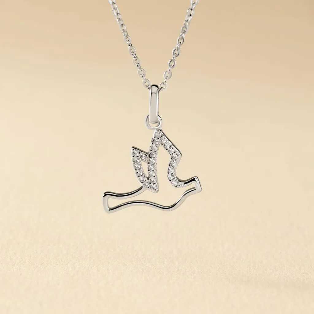 Collier Argent 925/1000 colombe Pendentif Colombe Avec Oxydes De Zirconium Chaine Maille Forcat 42cm