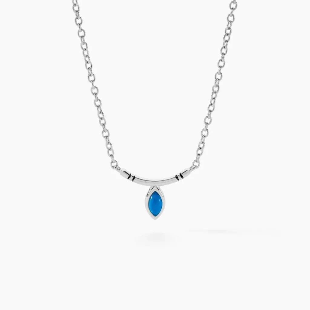 Collier Argent Blanc 925/1000 Goutte Turquoise Maille Jaseron 42+3cm