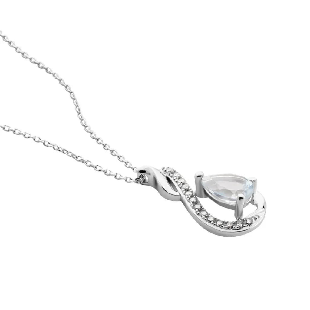 Collier Or Blanc 375/1000 Forme Goutte Topaze Et Oxydes De Zirconium Maille Forçat 38+4cm