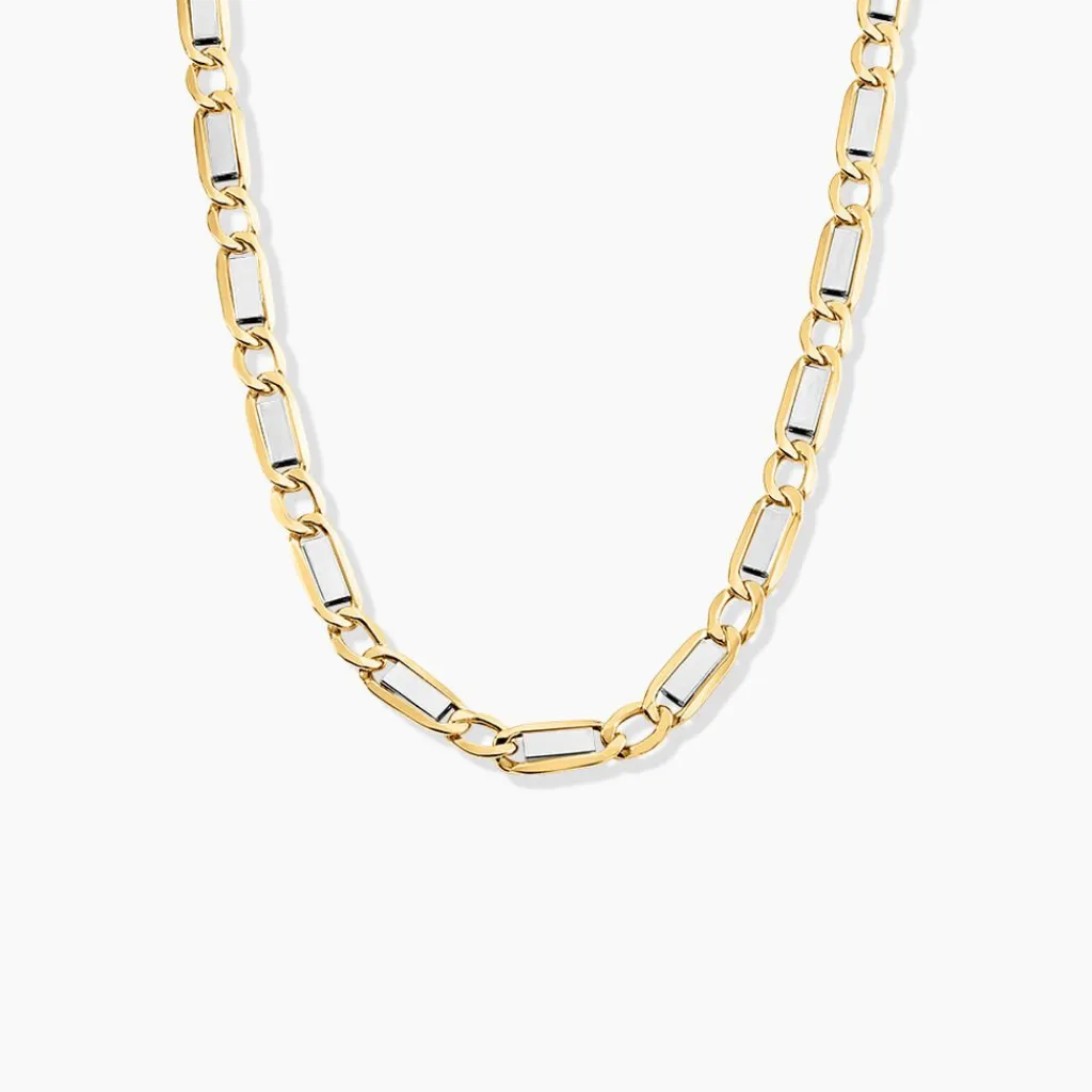 Collier Or Bicolore 375/1000 Maille Plaquette 5.6mm 50cm