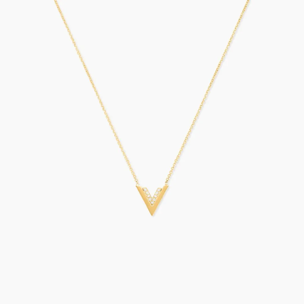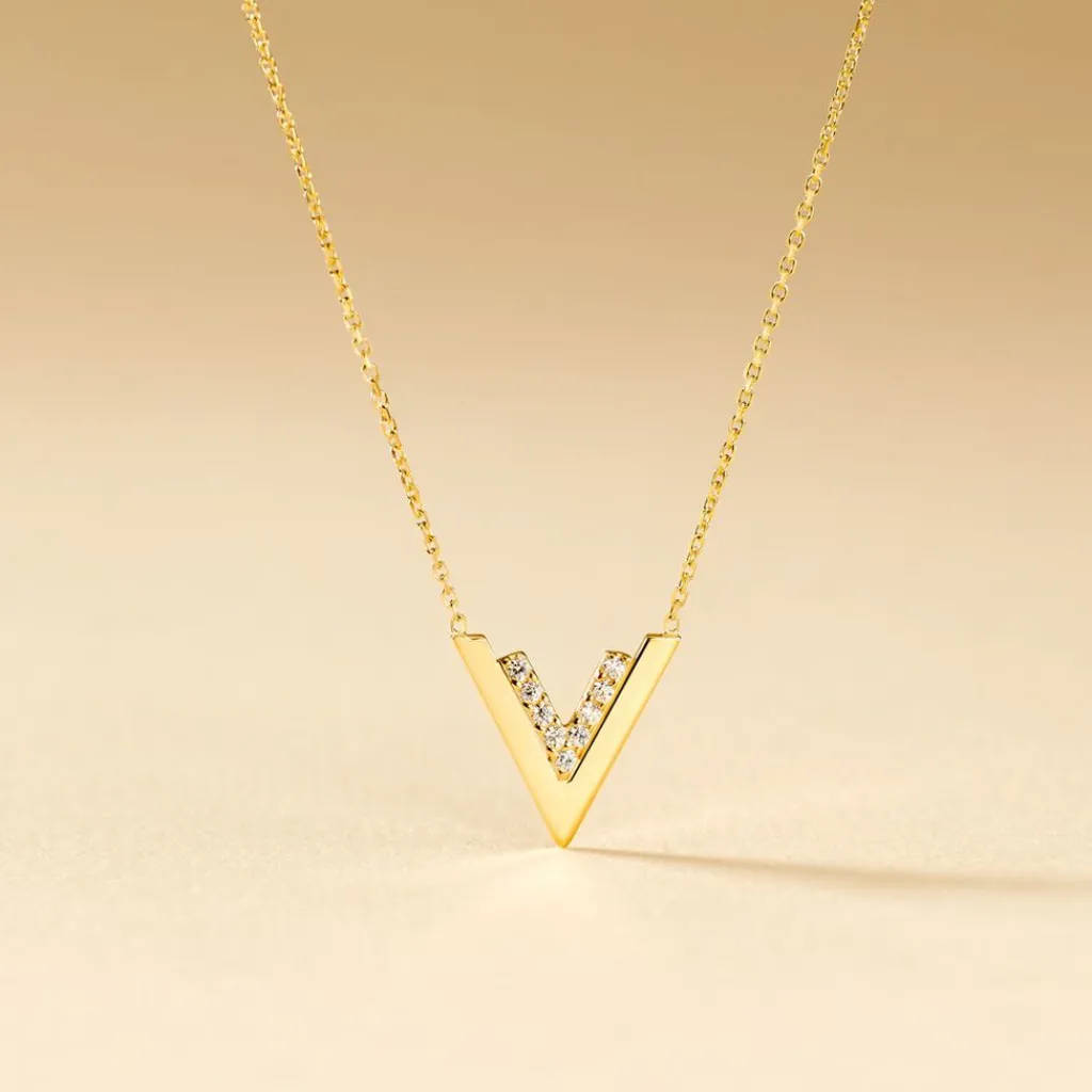 Collier Or Jaune 375/1000 Doubles V Oxydes De Zirconium 42cm