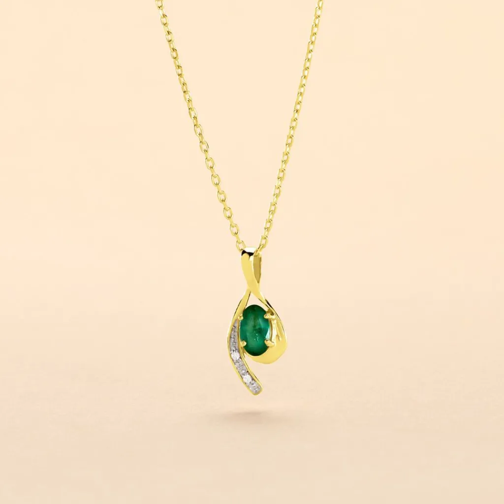 Collier Or Jaune 375/1000 Oval Serti Griffes Emeraude 0.25ct 40+2cm