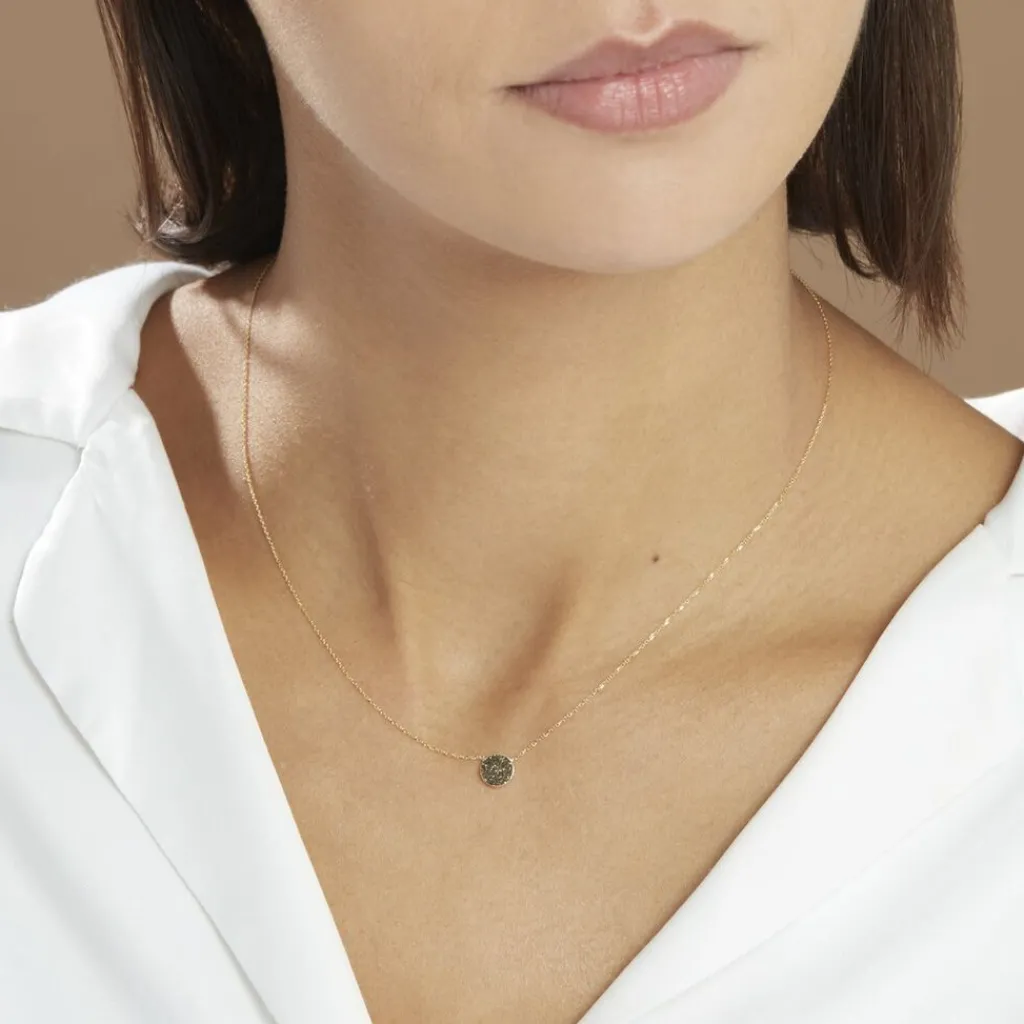 Collier Or Jaune 375/1000 Pastille Glitter Bronze Maille Jaseron 40+2cm