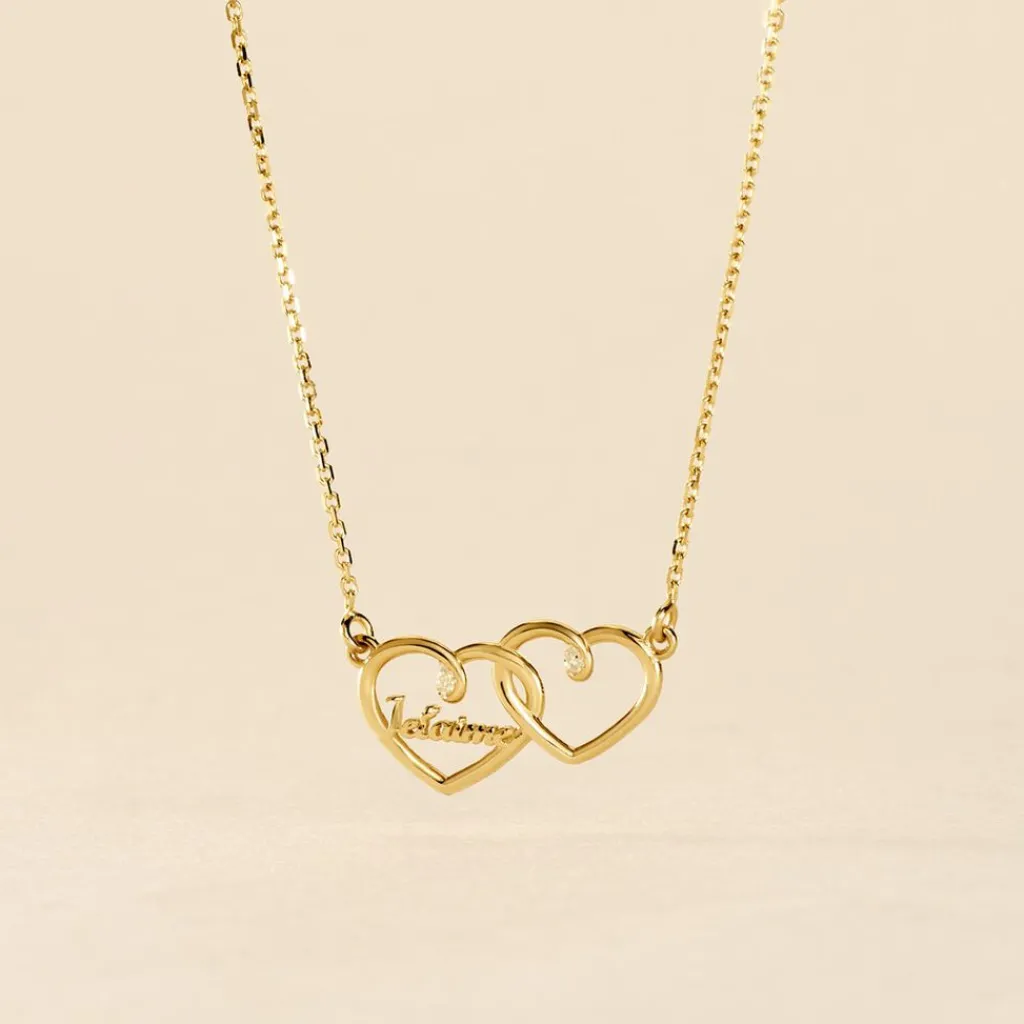 Collier Or Jaune 375/1000 Double C艙urs Ajoures Avec Message Effet Satine Et Glitter Maille Jaseron 42+3cm