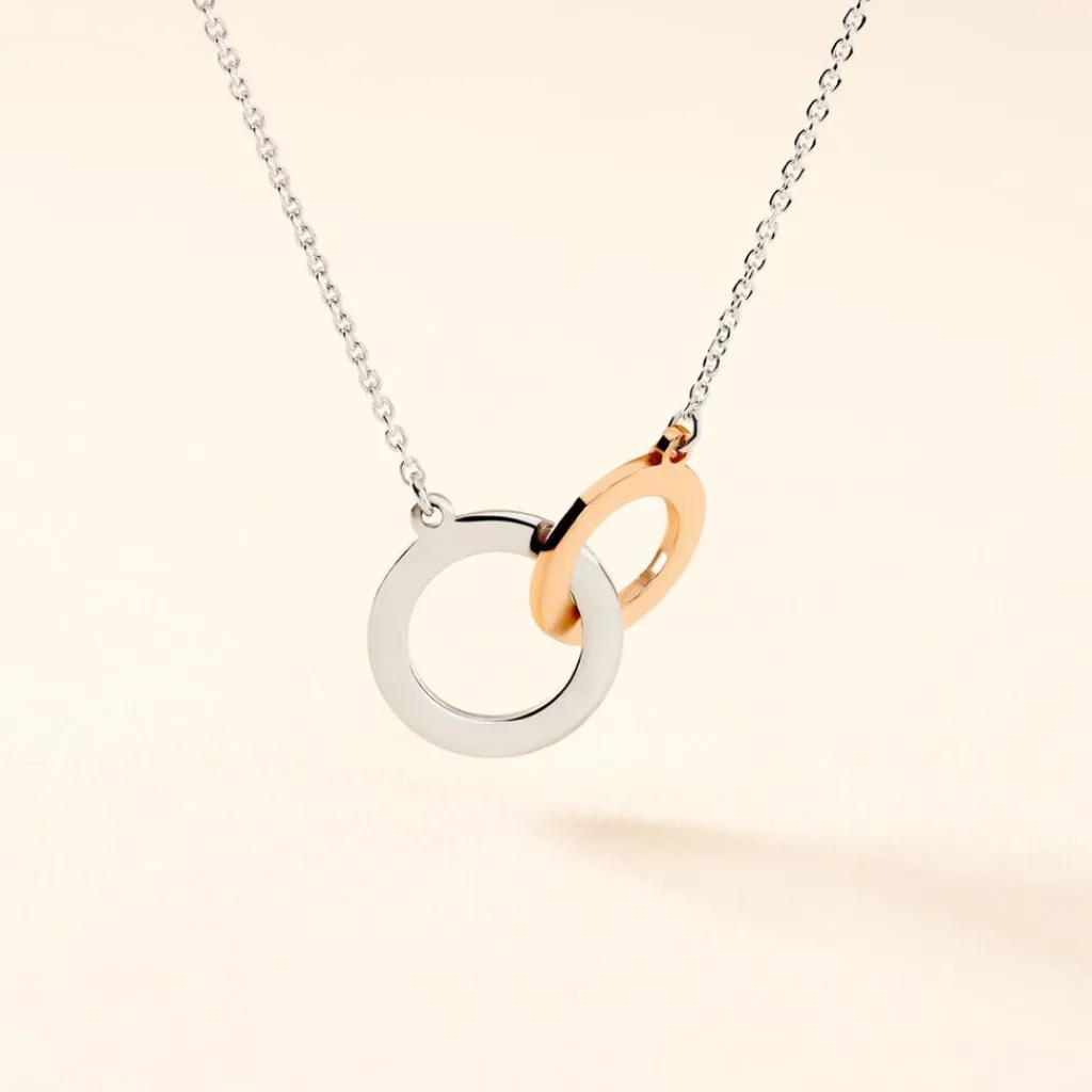 Collier Argent Bicolore 925/1000 Double Cercles Entrelaces Maille Forcat 45cm