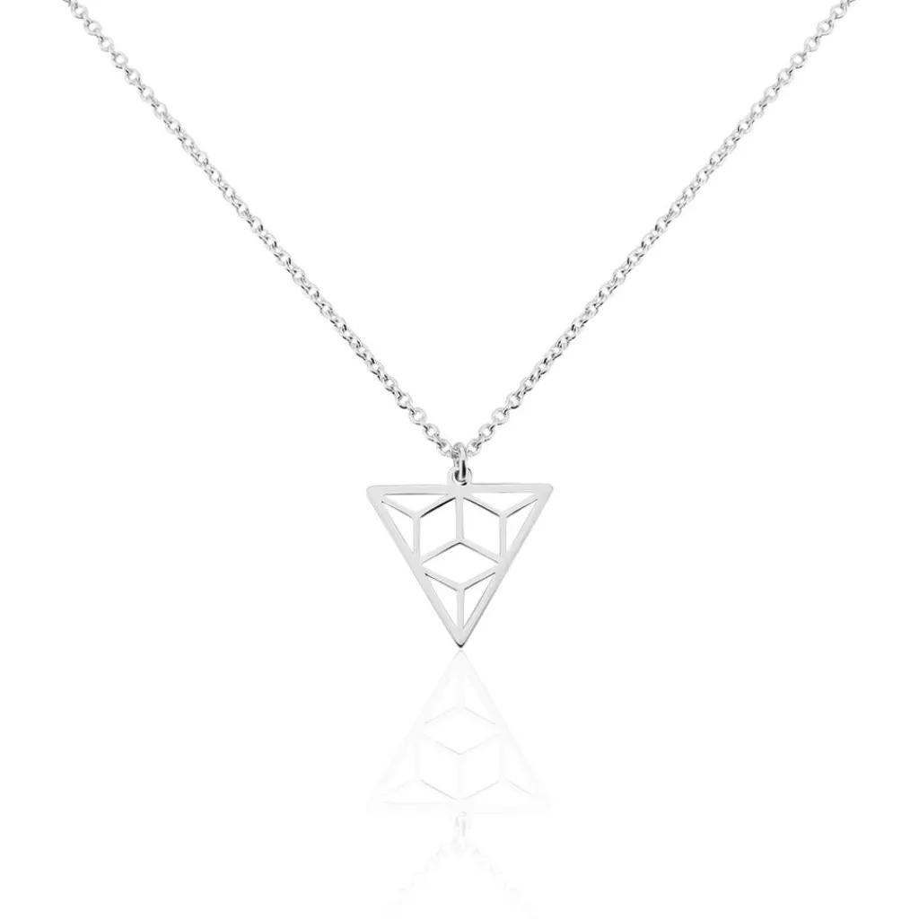 Collier Argent Blanc 925/1000 Triangle Motifs Geometriques Ajoures Maille Forcat 45cm