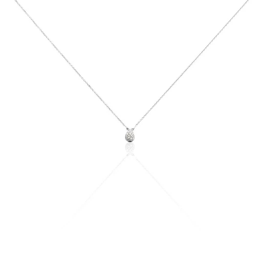 Collier Or Blanc 375/1000 Goutte Pavage Diamants 0.46mm 40cm