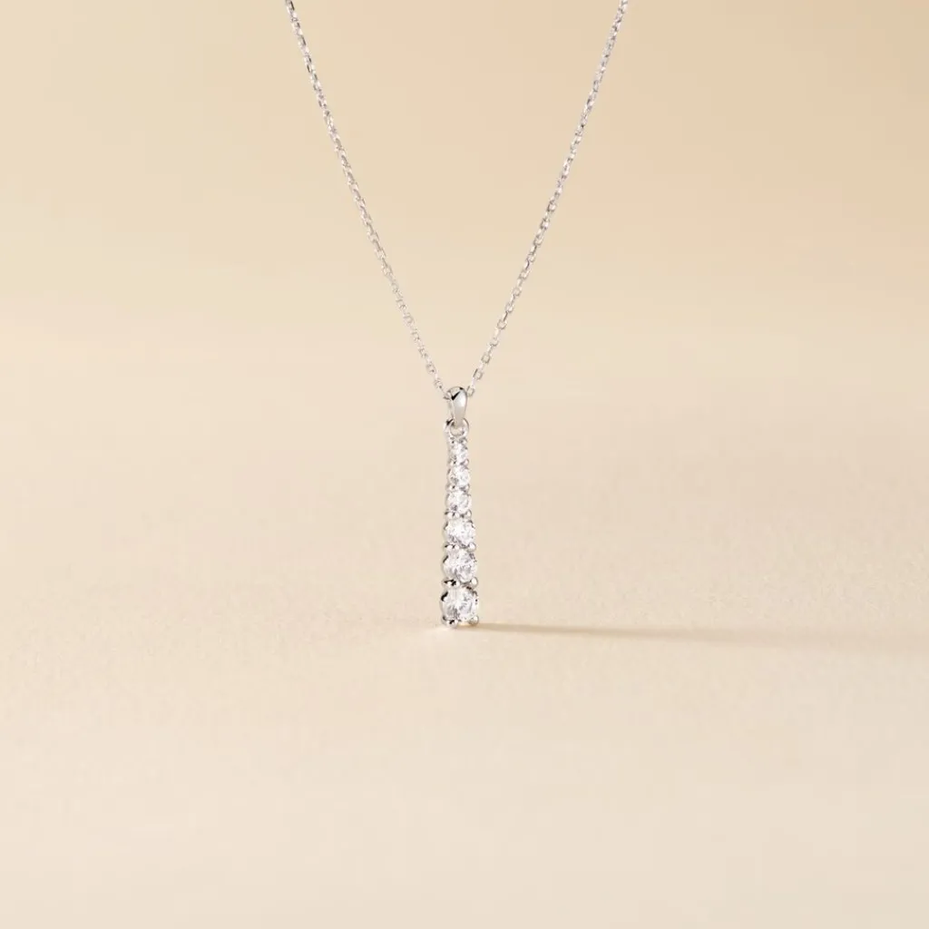 Collier Or Blanc 375/1000 Forme Cravate Barrette Pavage Oxydes De Zirconium 42cm