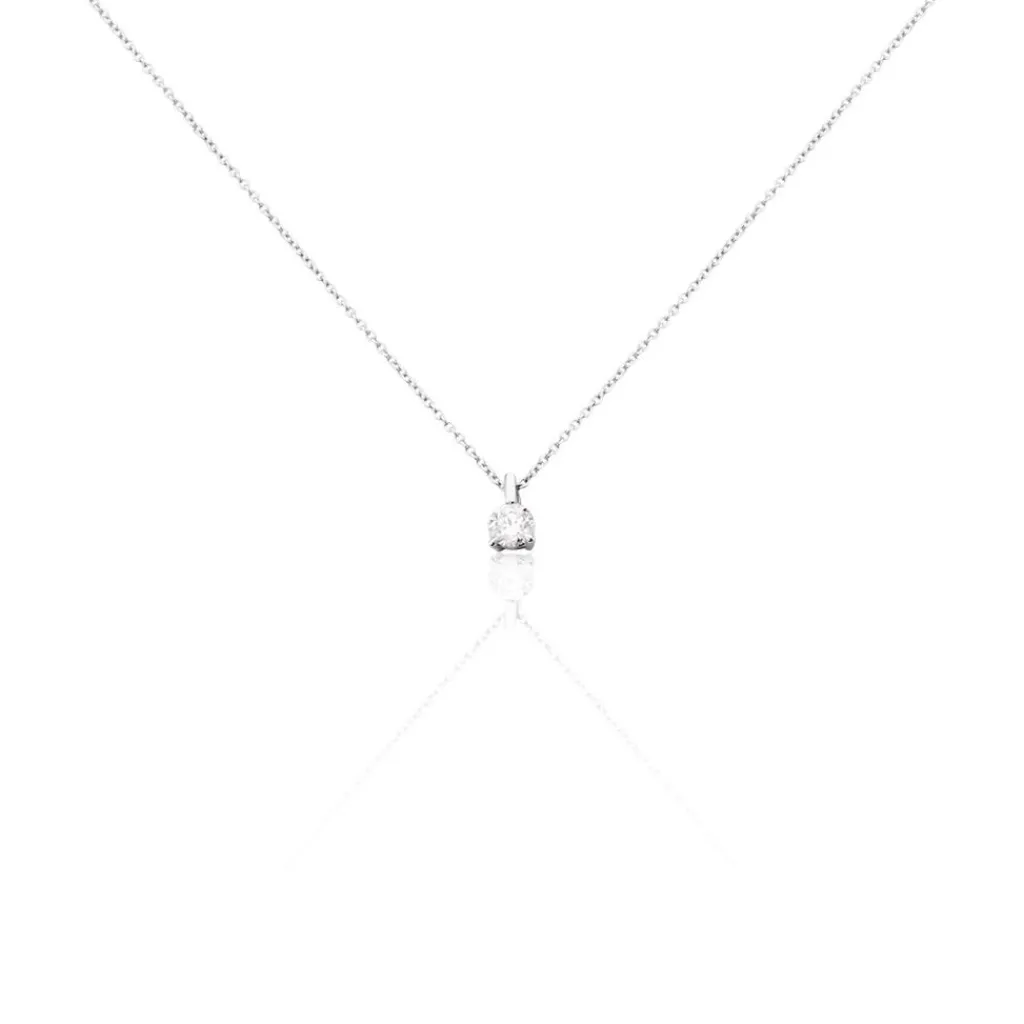 Collier Or Blanc 750/1000 Maille Jaseron + Pendentif Diamants 0.26cts 4 Griffes Beliere Fixe 42cm