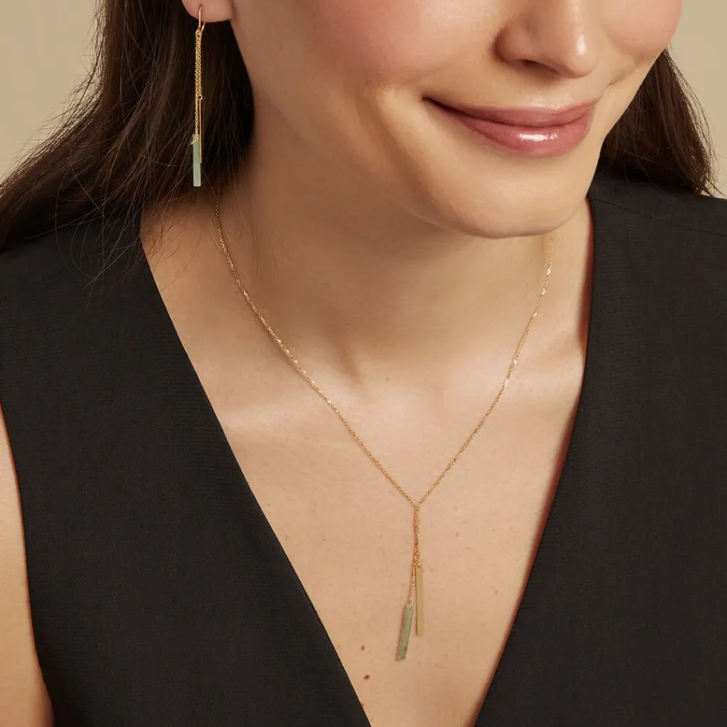 Collier Or Jaune 375/1000 Barre Rectangle Cravate Aventurine Maille Jaseron 40+2cm