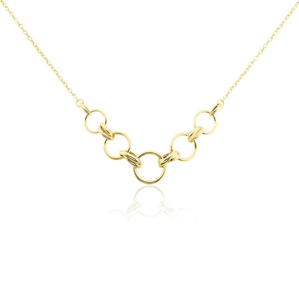 Collier Or Jaune 375/1000 Cercle Ajouré Alterné Avec Double Anneaux Oval Entrelacé Maille Forçat 42+3cm