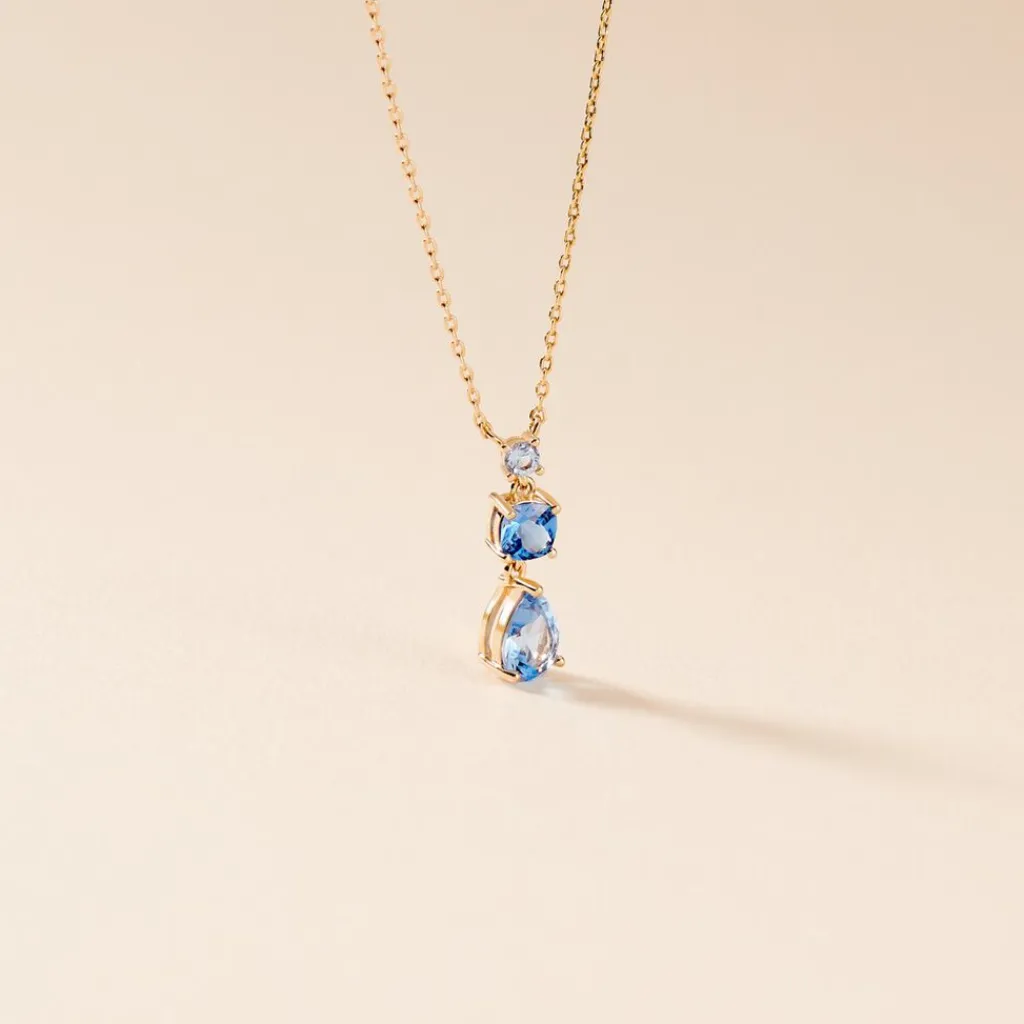 Collier Plaqué Or Jaune Pierres Artificielles Bleues Maille Forçat 45cm