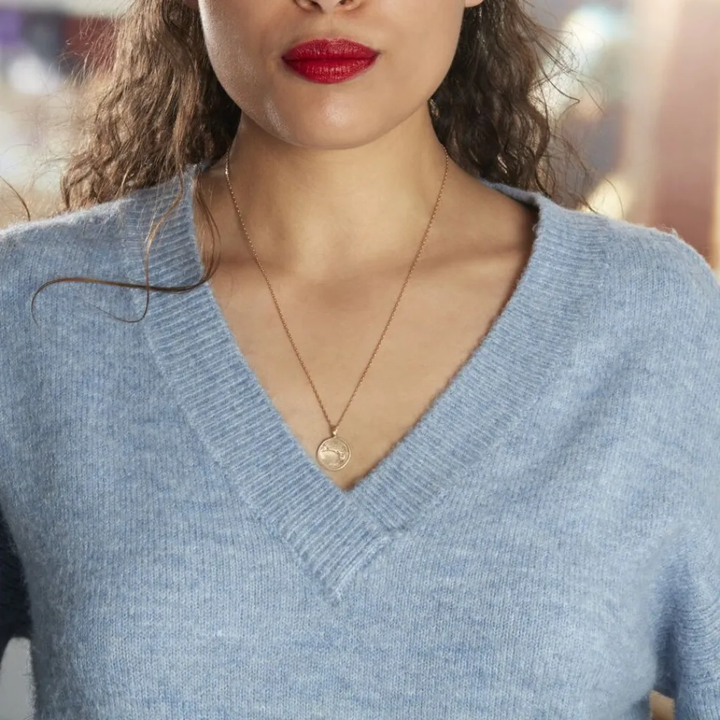 Collier Plaqué Or Jaune Pastille Mate Signe Astrologique Belier Oxydes De Zirconium Chaine Forcat 50cm