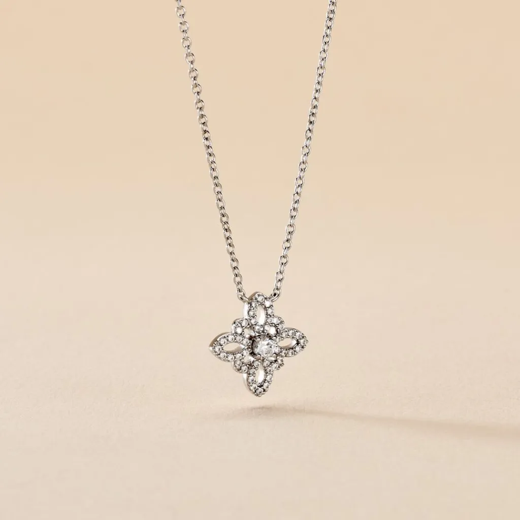 Collier Argent 925/1000 Fleur Pavage Oxyde De Zirconium Maille Jaseron 45cm